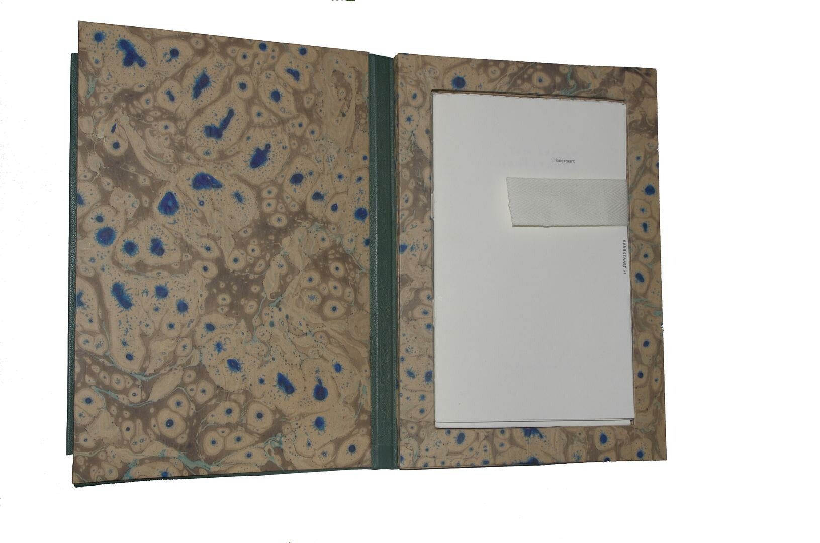 Onafgesneden gebonden katernen ingebed in gemarmerd 'doosje'